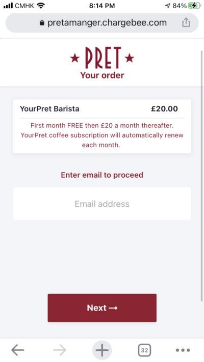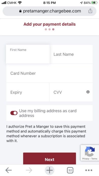 The technology behind this Pret is so smooth yet so simple. It turns out that subscription payment is powered by Chargebee while the QR code is handled by Eagle Eye.