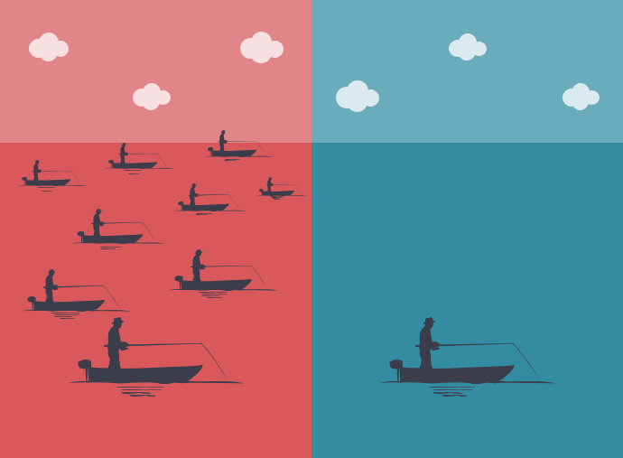 This is also called the Blue Ocean Strategy. Grow into the “Blue Ocean” new market space and create new demand. By contrast, “Red Ocean” is full of competition and blood 🩸